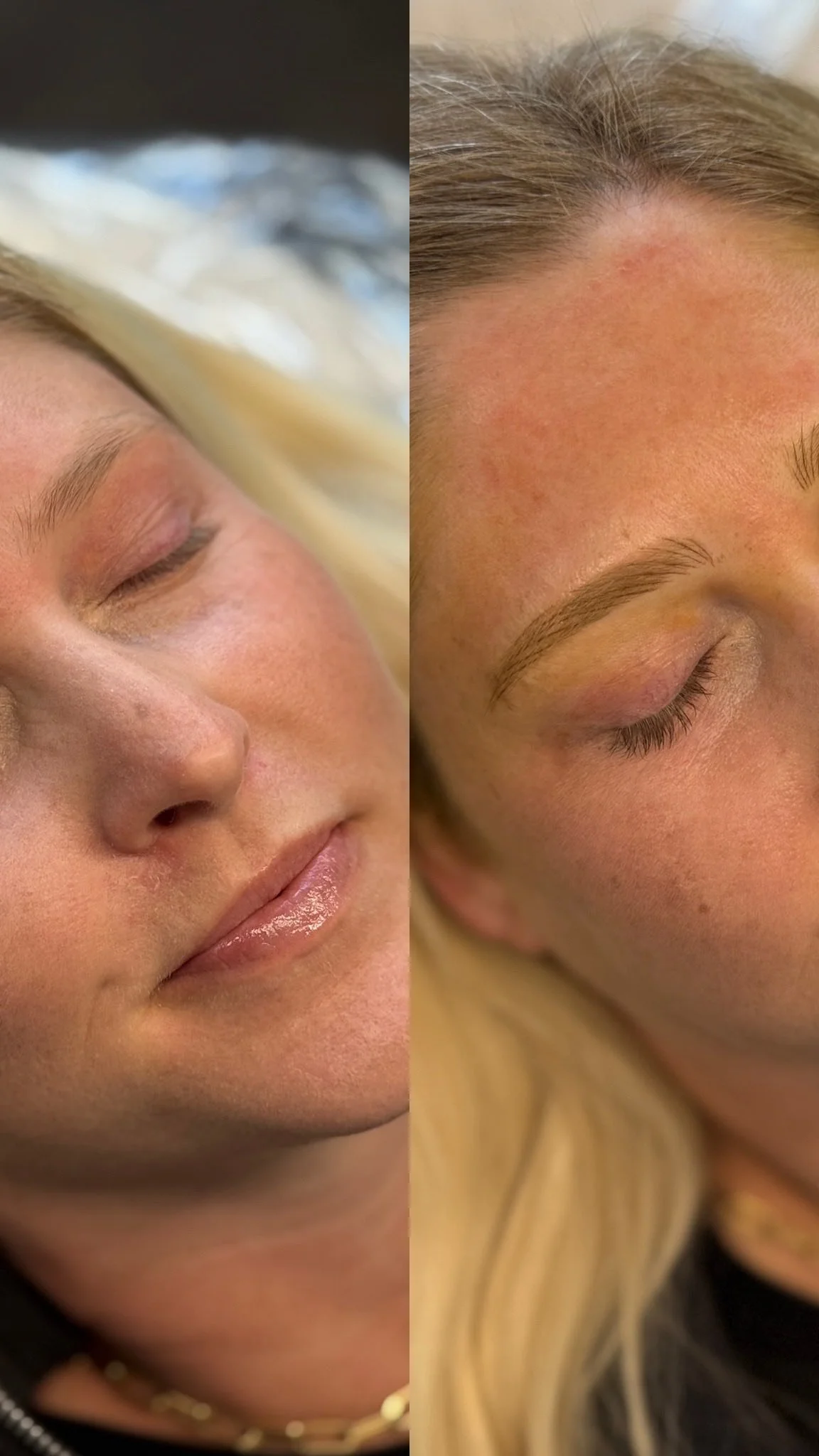 Also known as ombré brows, this method utilizes a shading technique to create a soft, powdered effect, resembling the look of filled-in eyebrows with makeup. This may sound intimidating, but it can be very soft and natural. It’s perfect for individuals desiring a slightly fuller, more defined brow appearance.